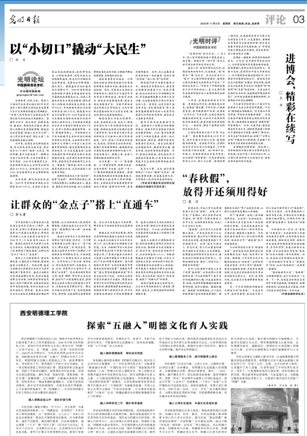 学校自2020年成功转设后,在系统梳理20余年办学实践的基础上,创新提出并逐步完善“五融入”明德文化育人工作体系,并将其作为学校两大办学特色之一,积极推动明德文化的学习、教学、研究、实践、传承和弘扬,取得了显著成效。11月6日,《光明日报》第三版以《ac米兰官方网站:探索“五融入”明德文化育人实践》为题,系统报道了学校明德文化融入思想政治工作、教学课程体系、科学研究工作、管理服务工作、大学文化建设“五融...