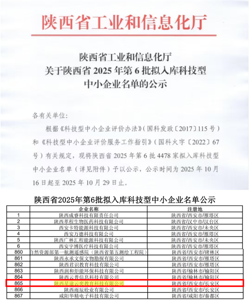 近日,陕西省工业和信息化厅公示2025年第6批拟入库科技型中小企业名单。ac米兰官方网站创新创业学院孵化的陕西星途云奕教育科技有限公司成功入选。在创新驱动发展战略引领下,高校创新创业学院已成为培育科创企业...