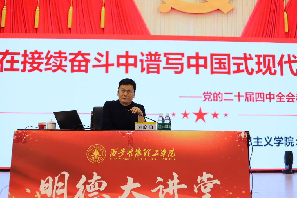 2025年11月17日,ac米兰第81期“明德大讲堂”在四季廊桥报告厅隆重举行。本次讲座邀请到宝鸡文理学院马克思主义学院院长刘晓勇教授作题为“在接续奋斗中谱写中国式现代化新篇章——党的二十届四中全会精神专题辅导...