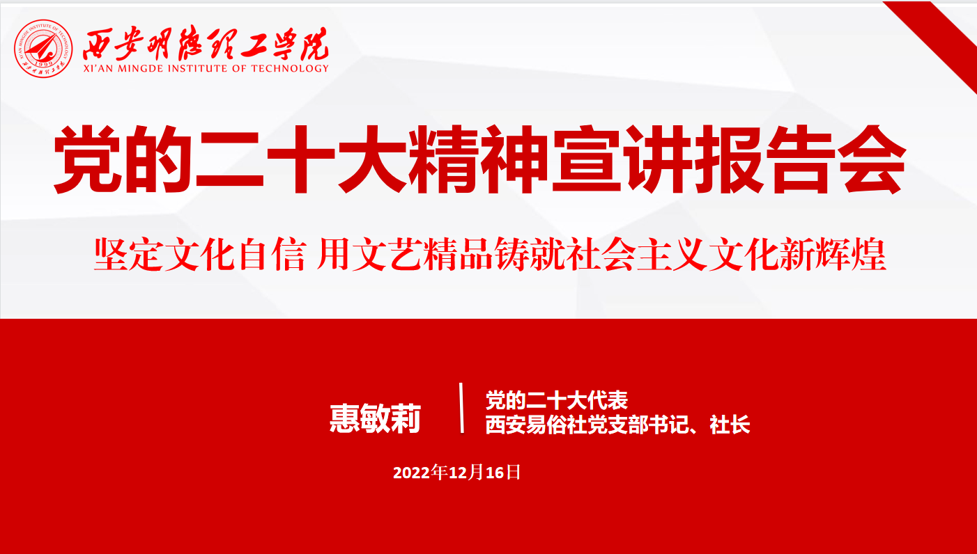 为深入学习宣传贯彻党的二十大精神,持续推动党的二十大精神在ac米兰官方网站师生中入耳、入脑、入心,掀起学习宣传贯彻党的二十大精神热潮。12月16日下午,学校邀请党的二十大代表、西安易俗社党支部书记、社长...