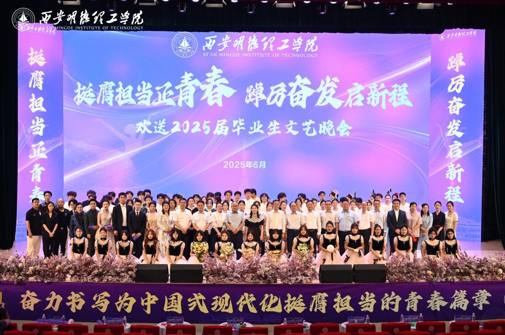 半夏时光凝绮梦明德灯火耀青春6月23日晚ac米兰官方网站“挺膺担当正青春踔厉奋发启新程”欢送2025届毕业生文艺晚会在四季廊桥报告厅举行学校董事长袁汉源、执行董事张琳、校长王志刚、党委书记马川鑫,明德源教育...
