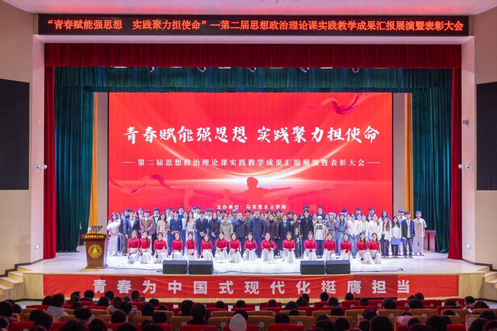 为深入推进思想政治理论课实践教学改革,充分展示思政教育育人成果,2025年11月25日晚,马克思主义学院 “青春赋能强思想,实践聚力担使命” 第二届思想政治理论课实践教学成果展演暨优秀作品表彰大会在四季廊桥报...