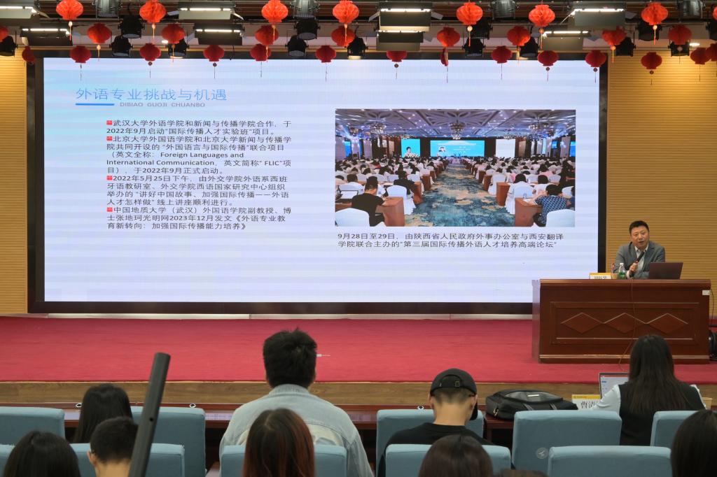 胡新华主任在讲座中深入分析了当前外语教育面临的挑战,如机器翻译和人工智能技术的快速发展,以及新文科建设背景下外语专业的转型需求。他强调了外语专业在国际化人才培养中的关键作用,并提出了外语专业发展的新路径,包括加强国际传播能力培养和地理标志国际化人才培养。