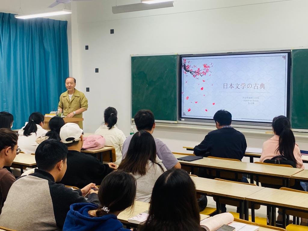 张忠锋教授以其深厚的学术功底和风趣幽默的讲解风格赢得了在场师生的热烈掌声。他声情并茂的讲解激发了学生们对于日本古典文学作品的学习热情,也进一步激发了大家学习日语、研究日本文化的兴趣。