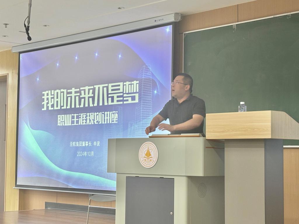在经济与管理学院“逐梦启航”大学生职业发展辅导员工作室的对接下,特邀校企合作单位陕西泾航企业管理集团有限公司董事长辛波作为本期大讲堂的主讲嘉宾。活动伊始,何文举向与会师生详细介绍了辛波的个人履历。辛波董事长以“我的未来不是梦”为题,结合自身求职、创业历程,从大学生就业选择、大学生就业自我认知、影响大学生就业的因素、职业生涯管理、塑造个人品牌及职场形象和职业技能探索等六个方面为学生做了职业生涯规划的分享交流,鼓励同学们珍惜大学时光、明确梦想,做好学业和职业规划,勇敢追梦。