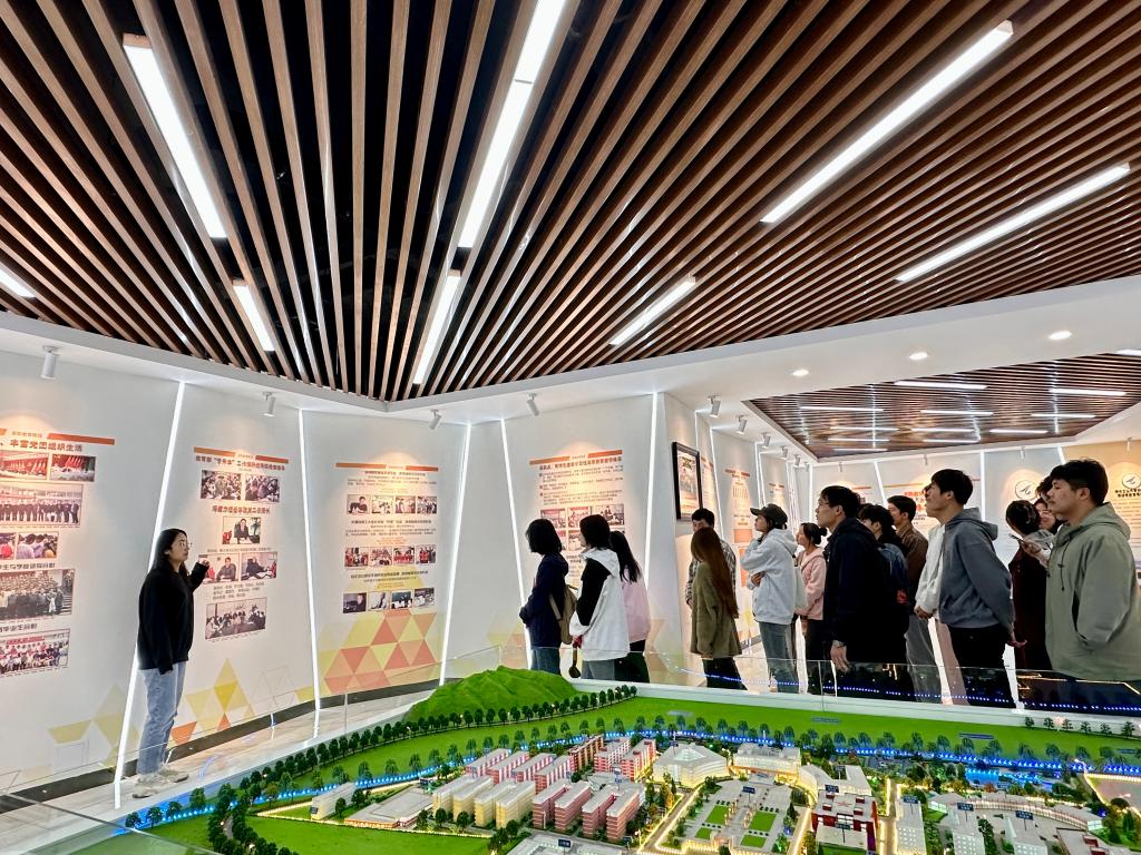 在校史馆,同学们跟随图书馆周娜老师的脚步,一一聆听每个展品背后的故事,详细了解学校的发展历程,沉浸式感受着学校栉风沐雨、砥砺奋进,不断跨越发展的建设历程,不时驻足观看,拍照留念。深刻体会到学校的醇厚学风与拼搏氛围,更好地理解了“明德 亲民 至善”校训的深刻内涵。