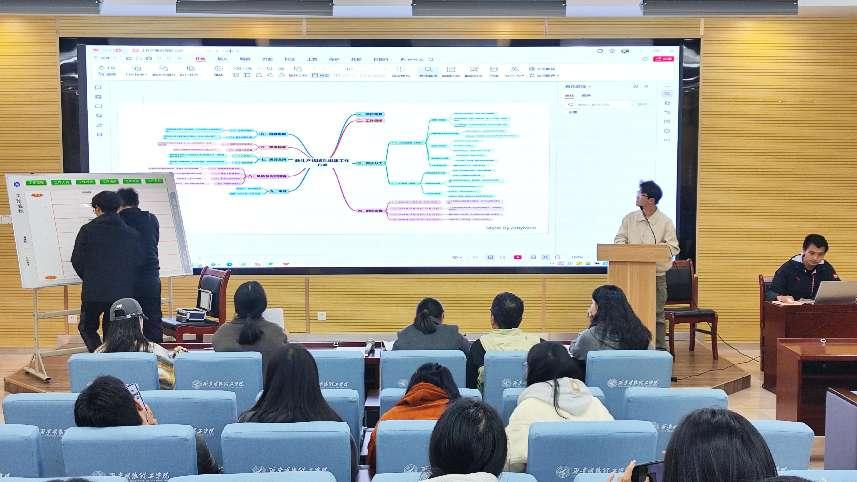 团队展示赛在建德楼201进行,经济与管理学院党委书记兼行政副院长何文举、教师代表秦东方、王淑芸、周阳、吕若欣,创新创业学院办公室主任奚颖,圆通科技股份有限公司副总经理付慧杰、教学训练部部长权国强及参赛学生集中观看了展示赛。学校教师王淑云、吕若欣、周阳和企业人员共同担任评委。