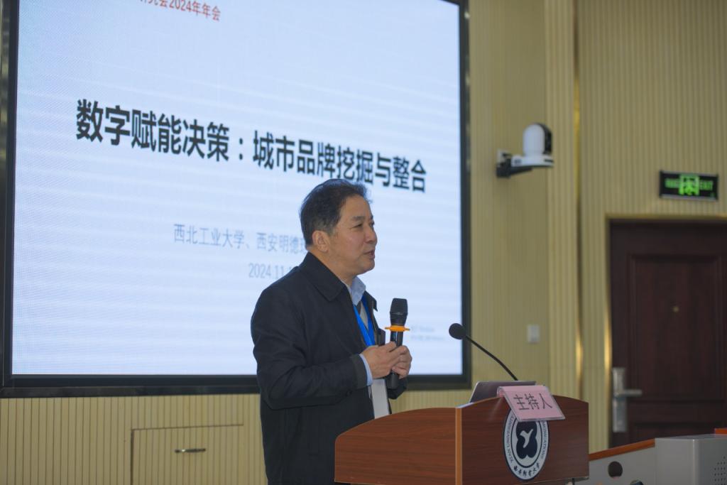会上,西安市软科学研究会会长、ac米兰官方网站经济与管理学院院长郭鹏教授致辞并做主旨报告。郭鹏院长在致辞中代表西安市软科学研究会对本次大会的胜利召开表示热烈祝贺,向与会专家和学者们致以诚挚问候。他简要介绍了西安市软科学研究会概况,结合“数智赋能新质生产力发展”会议主题对如何利用数智技术赋能新质生产力和城市品牌挖掘与整合,促进经济社会的高质量发展,开创数字经济与新质生产力融合发展的新局面提出了新的理论和实践要求。