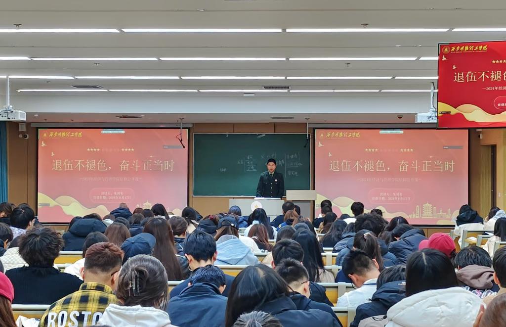 国家奖学金获得者沈志扬以“做一个勤快的人,越努力越幸运”开场,从思想、学习、生活、实践等四个方面进行分享,鼓励学弟学妹们端正学习态度、明确学习目标,通过个人奋斗,谱写大学生涯美好华章。国家奖学金获得者张一凡以“千帆竞发,逐梦新时代”为主题,着重分享了自身参加学科竞赛、发表研究论文的经历,勉励同学们积极参加学科竞赛,在竞赛中培养创新思维、团队合作精神,提升专业能力和综合素质。退伍学生朱利韦以“退伍不褪色,奋斗正当时”为主题,向大家分享了自身响应党和国家的号召,应征入伍到祖国需要的地方建功立业的青春奋斗故事。申京杰以“七彩假期,一场青年与基层的‘双向奔赴’”为主题,分享了参加学校“四百工程”思政实践育人的经历,号召同学们积极投身志愿服务活动,助力乡村振兴,服务社会主义现代化建设。