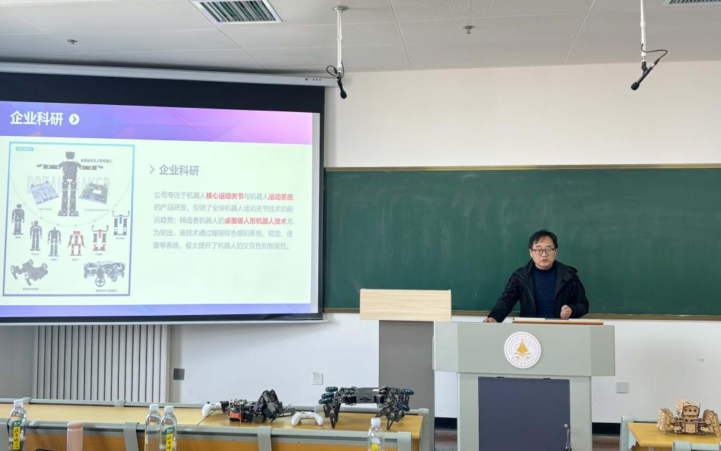 开幕仪式上,副院长冯强教授首先对西安缔造者机器人责任有限公司进行了详细介绍。作为我院校企合作单位,同时也是ac米兰明德智创设计联合研发科研平台的合作者。缔造者机器人是西北唯一人形机器人和关节全栈式自主研发的科研型公司,主要从事消费级服务机器人(机器人运动关节)与教育娱乐机器人软硬件自主研发的科技创新型企业。目前已获专利数十项,获批西安市碑林环大学创新产业带重点孵化企业,并于2019年获得国家高新技术企业认证,2019年获得金山安全软件天使轮投资。公司推出了球形机器人、康养伴侣机器人、仿生关节类机器人等多样化产品,其中教育娱乐类机器人产品BMBOT系列已被1000+中小学使用,创梦开源系列已被280所高校采用,企业与多家高校已建立良好的合作关系,为本次工作坊的顺利开展奠定了坚实基础。