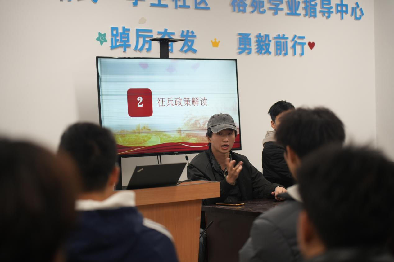 为更好地服务有志青年,活动还特别设置了征兵政策宣讲。退伍学生与辅导员阮文成老师为大家详细解读了最新的征兵政策、入伍流程和优待措施,并耐心解答了现场同学关于参军的疑问。