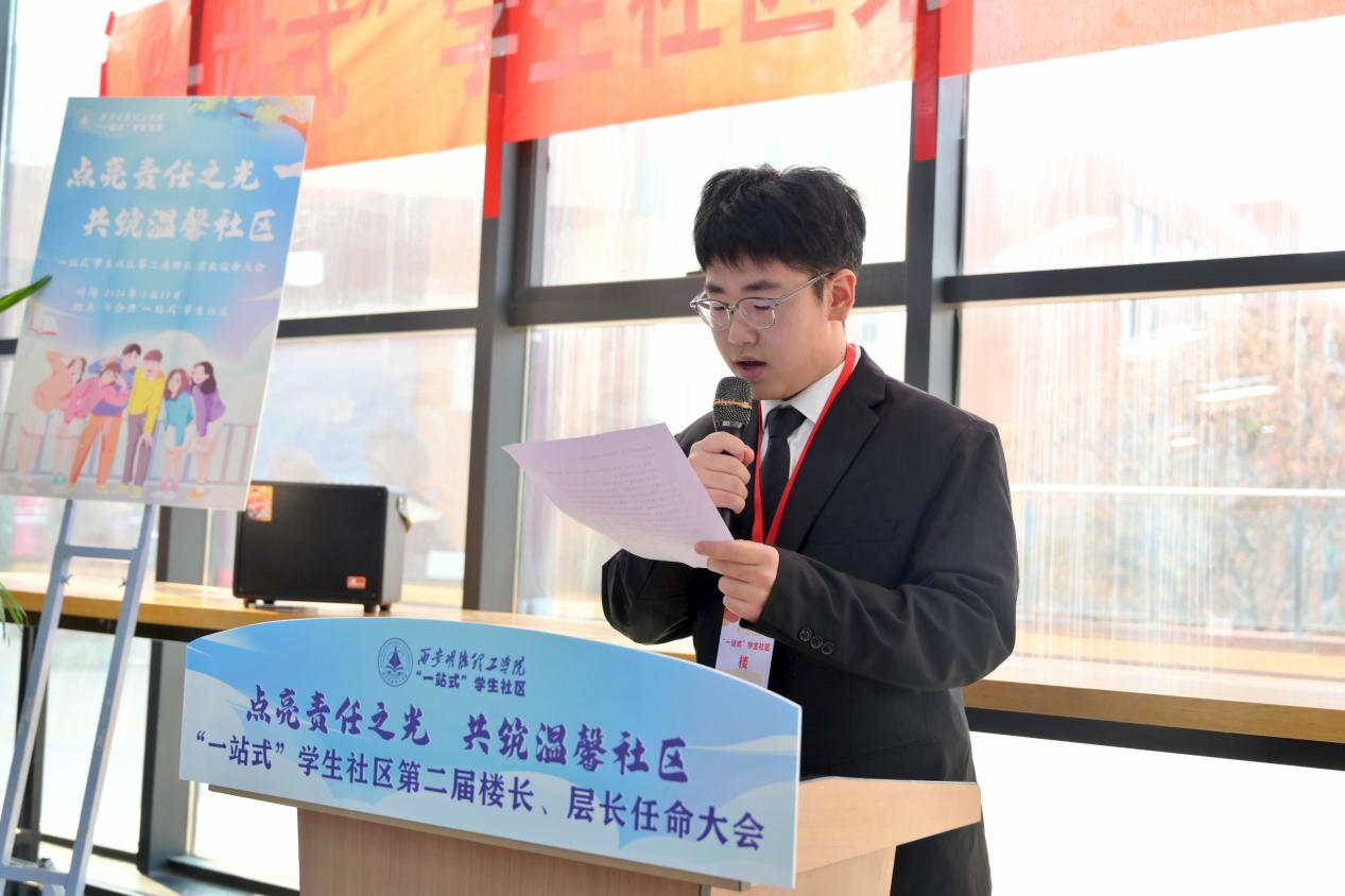 楼层长作为“一站式”学生社区管理和服务的骨干力量,是学生社区治理的重要抓手,此次任命大会有助于楼层长明晰自身工作职责、激发创新活力,我们共同期待新一届楼层长们在新的任期内,能够以更加积极的姿态参与到学生社区服务与管理中,在实践锻炼中,不断为构建和谐、文明的学生社区贡献力量,共同缔造“一站式”学生社区综合育人和全域管理新格局。