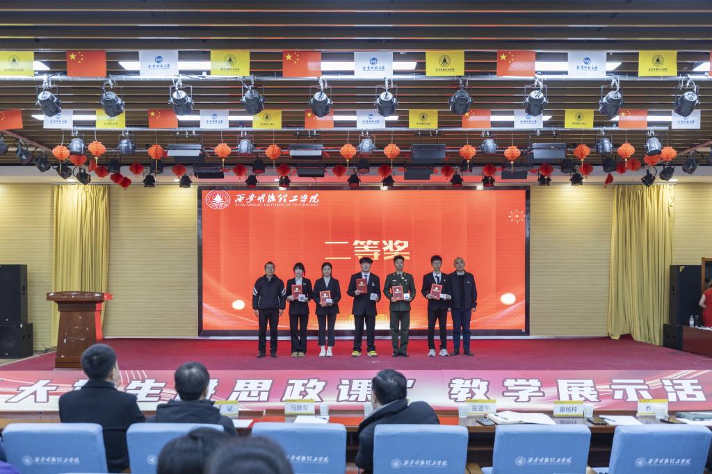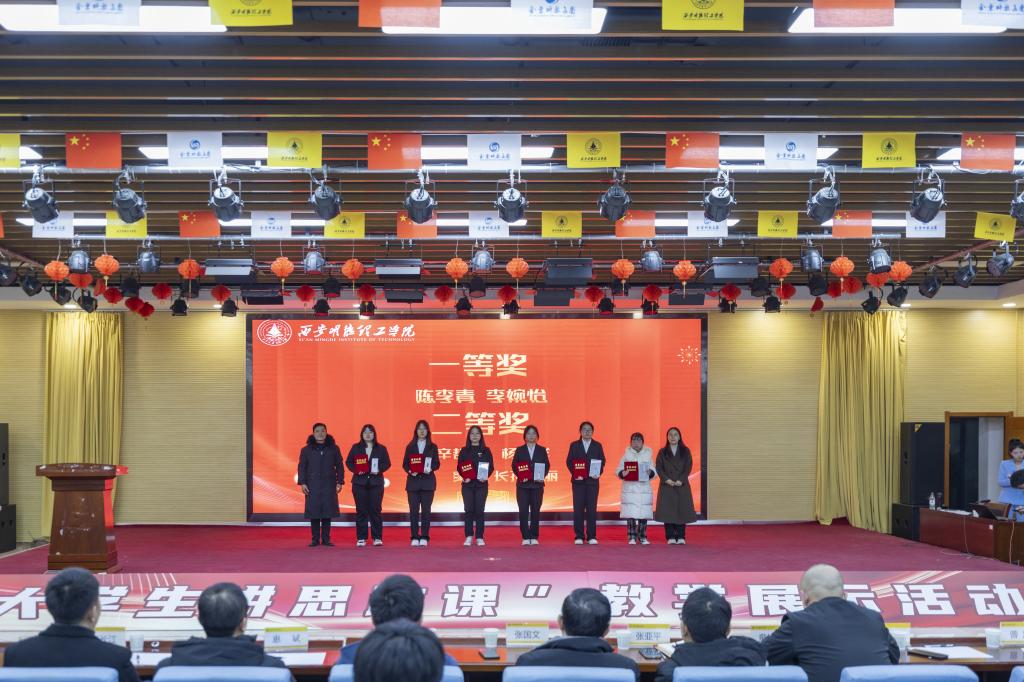 西安邮电大学马克思主义学院副院长马建军为获得一等奖的同学颁发荣誉证书和奖品