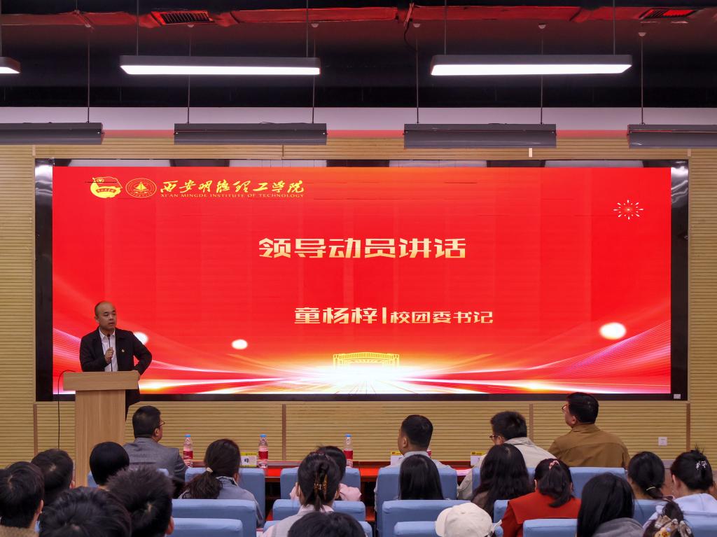 政策引领方向,青春响应号召。会议以“报效祖国 建功西部”为主题,通过政策宣讲、榜样分享、动员答疑等环节,全方位解读西部计划的服务内容、政策保障及报名流程,号召青年学子以奋斗之姿奔赴西部基层,在祖国最需要的地方绽放青春光彩。校团委书记童杨梓在动员讲话中表示:“西部计划是青年学子践行家国情怀的重要平台,希望同学们勇担时代使命,将个人成长融入国家发展大局,用知识和热情为西部建设贡献力量。”