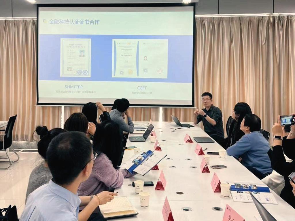 座谈会上,西京学院商学院副院长王颖对学院教师的到访表示热烈欢迎,详细介绍了商学院在金融科技专业建设中的特色做法与取得的成果。她指出,随着金融数字化转型加速,跨学科复合型人才的需求日益凸显,需通过校企协同、实践赋能等方式强化学生核心竞争力。在实验室建设方面,西京学院金融科技系主任卢静重点展示了该校量化金融实验室的架构与成果,强调“以赛促学、以研促教”的实践教学理念。金融量化分析教研室主任李云飞补充介绍了Python编程、区块链技术等课程的校企联合开发经验。王颖副院长表示,希望以此次交流为契机,搭建长效沟通平台,推动资源共享与优势互补。关娜对西京学院的热情接待表示感谢,她谈到,西京学院在金融科技实践教学与产学研结合方面的经验值得借鉴,将结合调研成果,进一步完善人才培养方案,推动专业建设与产业需求精准对接。