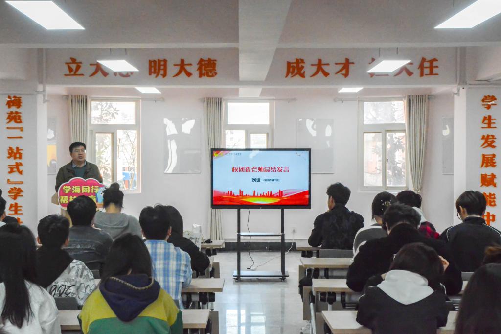 最后,校团委副书记刘雄进行总结发言。他对“学业加油站”项目给予了高度评价,充分肯定了学生会、朋辈导师以及全体参与学生在项目推进过程中的辛勤付出。他希望“学业加油站”能够不断总结经验,创新帮扶形式,提高帮扶质量,扩大帮扶覆盖面,让更多的学生受益。同时,也鼓励广大同学积极参与到学业帮扶活动中来,在帮助他人的过程中实现自我成长。