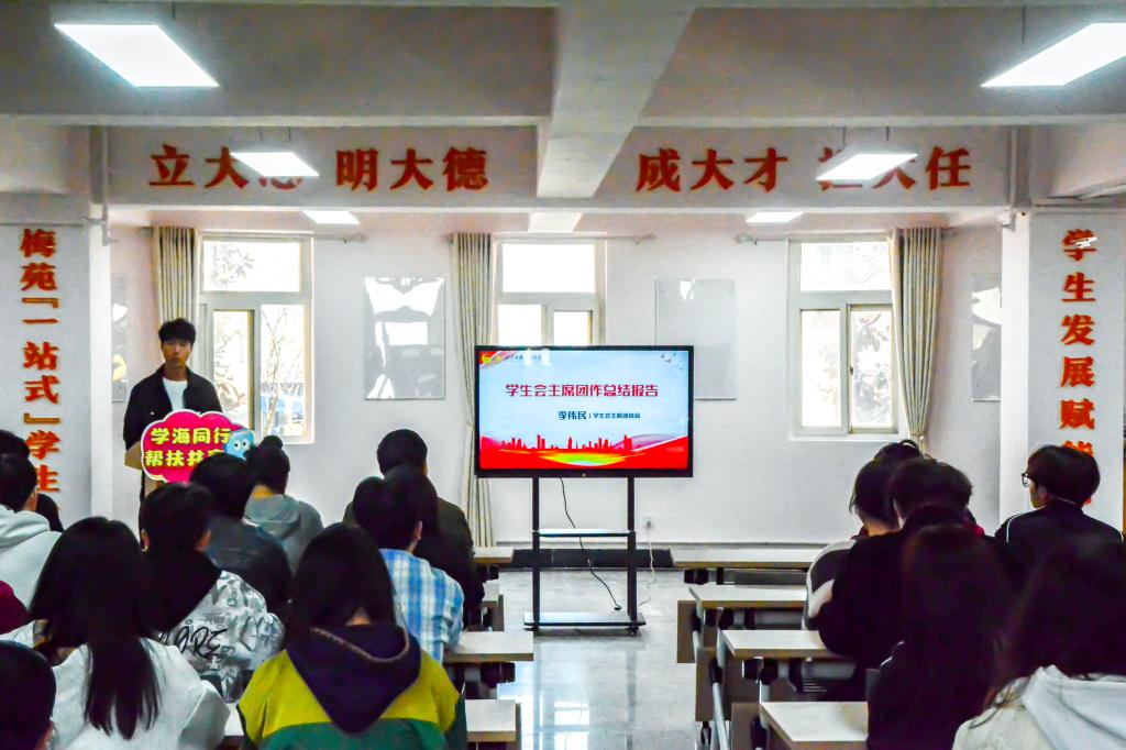 会议在庄严的国歌奏唱声中拉开序幕。学生会主席团成员李伟民作总结报告。他提到,“学业加油站”通过举办一对一辅导、小组学习交流等多样化的活动,覆盖了多个学科领域,为同学们提供了针对性强、实用性高的学习帮助,并取得了显著成绩。这份报告不仅让师生们对“学业加油站”的发展历程有了清晰的认识,更为后续工作的优化改进指明了方向。