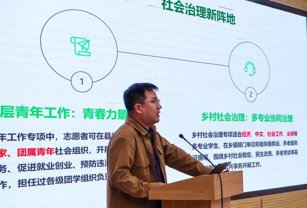 “西部计划不仅是一次志愿服务,更是职业发展的新起点。”招生就业中心王育春主任的发言让在场学生耳目一新。他结合当前就业形势,深入分析了西部计划对个人成长的促进作用,为大四学子提供了全新的职业规划思路。