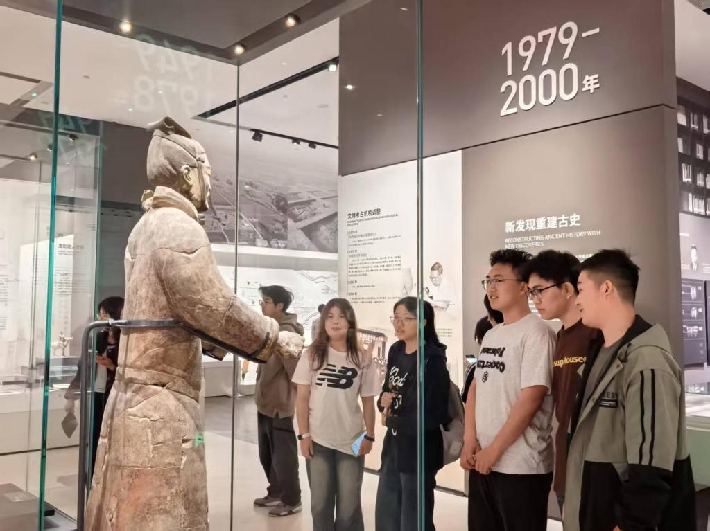 陕西考古博物馆作为我国首座考古学科专题博物馆,珍藏着众多珍贵的考古文物,承载着丰富的历史文化信息,展厅分为考古历程、文化谱系、考古发现、文保科技四个篇章。在讲解员的带领下,师生们有序参观了各个展厅,系统学习了陕西各个时期考古重点项目和文物保护技术的发展和应用,了解了自旧石器时代至周原遗址时段的中华文化谱系变化。参观过程中,一件件文物映入眼帘,师生们不时驻足凝视,被古代人民的智慧和创造力深深震撼。大家也纷纷表示,中华文化底蕴深厚,博大精深,作为中华儿女都应自觉成为优秀传统文化的保护和传承者,不断增强保护文化遗产的意识,让宝贵遗产世代传承、历久弥新。