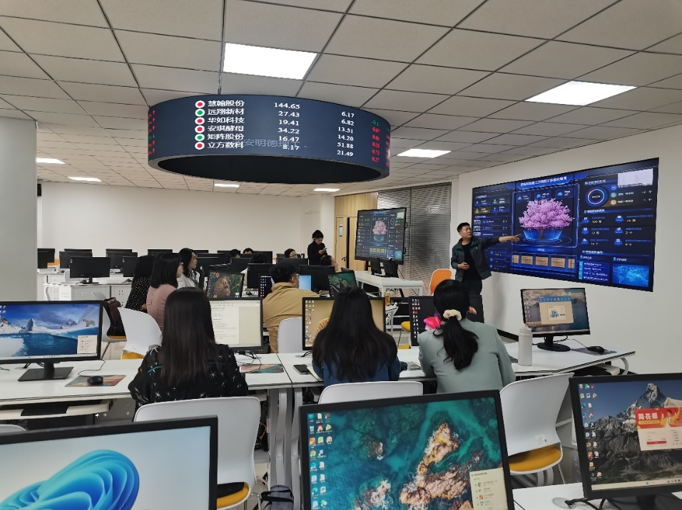 培训环节,企业导师首先分享了金融行业发展的最新动态与趋势,就金融科技、数字化转型、商业数据分析和投资策略等行业前沿应用进行了案例分享与研讨。对数字化实验室中金融模拟交易系统、量化投资、金融大数据、国际结算等板块进行了深度应用培训,同金融学专业教师就“行业前沿、行业应用案例、实训软件”与课程的融合进行了深入研讨。