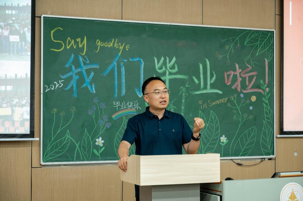 班会上,学院党委书记肖千春为毕业生送上了饱含深情与期望的毕业寄语。他鼓励同学们“做一个热爱生活的人,用心感受生活的美好;做一个有心用心的人,认真对待每一件事;做一个爱学习、会学习、有学习能力的人,积极应对各种挑战;做一个有核心竞争力的人,在未来的职场和人生道路上脱颖而出。”肖书记的话语情真意切,字里行间都凝聚着学院对毕业生们的深切关爱与殷切期待,也让同学们感受到了学院作为坚实后盾的温暖力量。