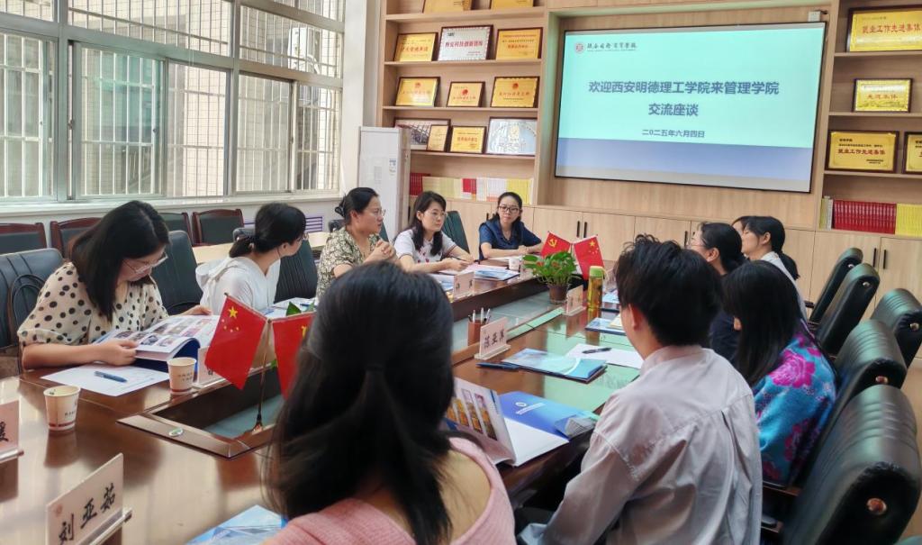 为进一步加强专业建设,提升人才培养质量,6月4日,经济与管理学院教学副院长许萍及各专业教师代表一行5人前往陕西国际商贸学院管理学院开展调研交流。陕西国际商贸学院管理学院副院长常引、各教研室主任及教师代表参加了座谈交流。