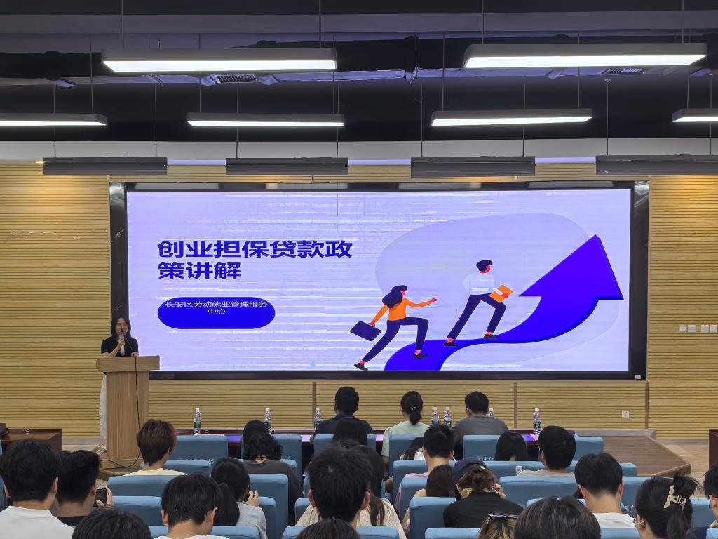 创业之路,政策先行。长安区人社局劳动就业管理服务中心范欣婷为现场同学详细解读了创业担保贷款、一次性创业补贴等政府创业扶持政策,并系统介绍了申报流程。通过政策宣讲,学生们对如何利用政府资源降低创业成本、缓解资金压力有了更清晰的认识,为未来创业实践奠定了政策基础。
