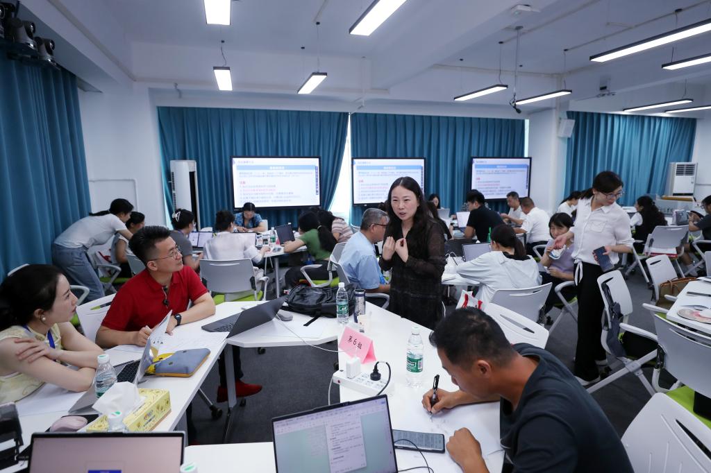 在实操培训环节,黄河科技学院课改核心团队通过理论讲解、分组实操与现场指导相结合的方式,指导参训教师完成了知识建模图和教学设计。