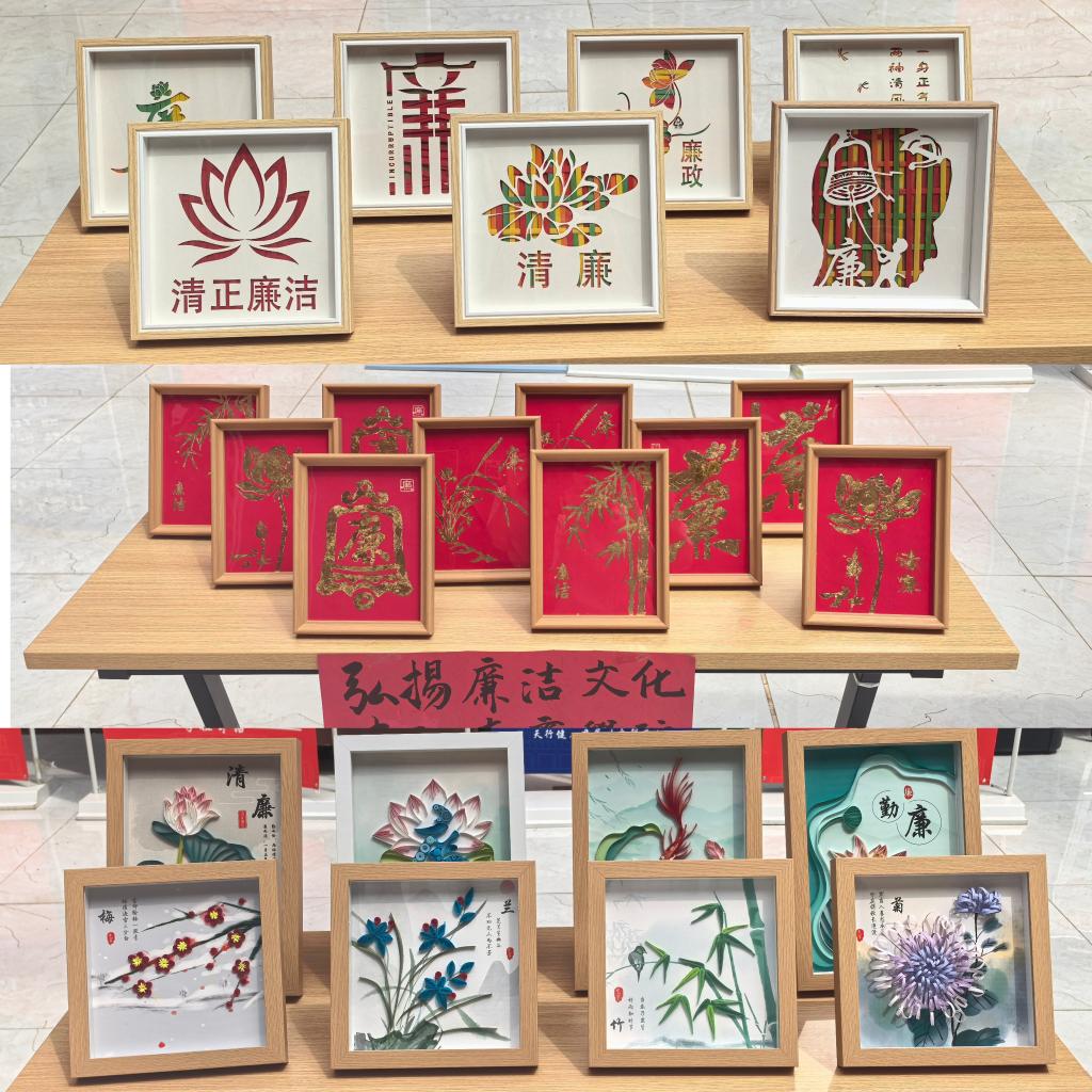 展览共展出剪纸、书法、海报、非遗竹编、非遗衍纸、手抄报等六大类作品,充分融合了传统文化与现代创意。每一件作品都凝聚着创作者对廉洁文化的深刻理解,以艺术语言传递清风正气。主题鲜明的海报以赤色笔锋勾勒时代重任,非遗剪纸技法与廉洁主题相映生辉,手抄报以生动的图文叩击心灵,发人深省。翰墨丹青间,廉洁文化的内涵通过书画作品得到深刻诠释,增强廉洁文化的吸引力和感染力,教育引导师生涵养廉洁自律道德操守,严守廉洁从教、廉洁从学底线,以廉洁铸就高尚师魂,用奋斗担当育人使命。大家纷纷表示,作品将思想性与艺术性有机结合,把廉洁文化与中华优秀传统文化、经济与管理学院学科专业特色深度融合,形式多样、构思巧妙,在今后的工作、学习和生活中,将以廉洁文化为养分,不断涵养自身的精神世界与道德品格,筑牢廉洁自律防线,时刻严守纪律红线与规矩底线,持续增强自我约束的意识与能力。