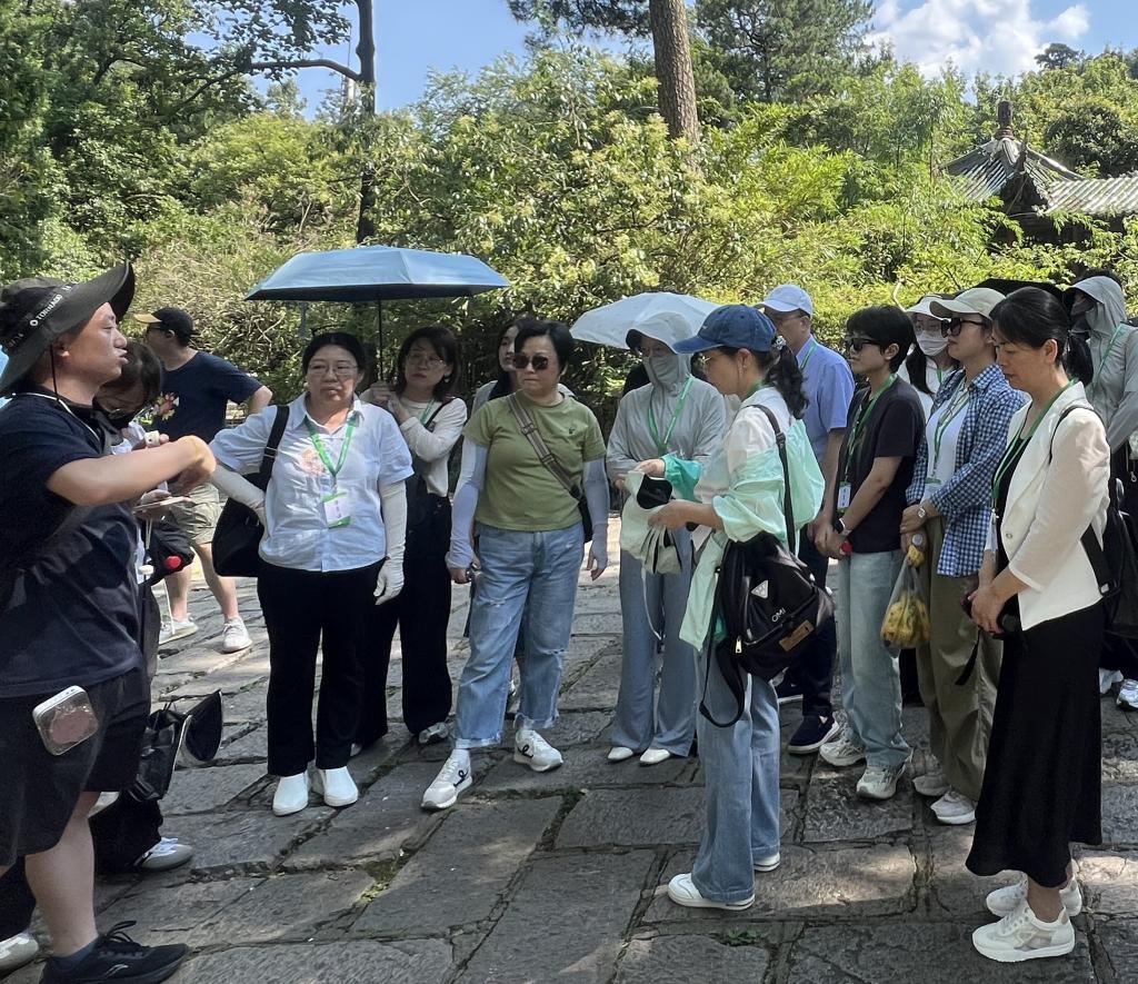 研修团队在贵州师范大学思政课教师张俊龙的带领下,首站前往贵阳黔灵山参观蒋介石关押张学良、杨虎城的麒麟洞和解放贵州革命烈士纪念碑,重温中国抗战革命史,接受革命传统教育,继承和发扬革命先烈大无畏的牺牲精神。