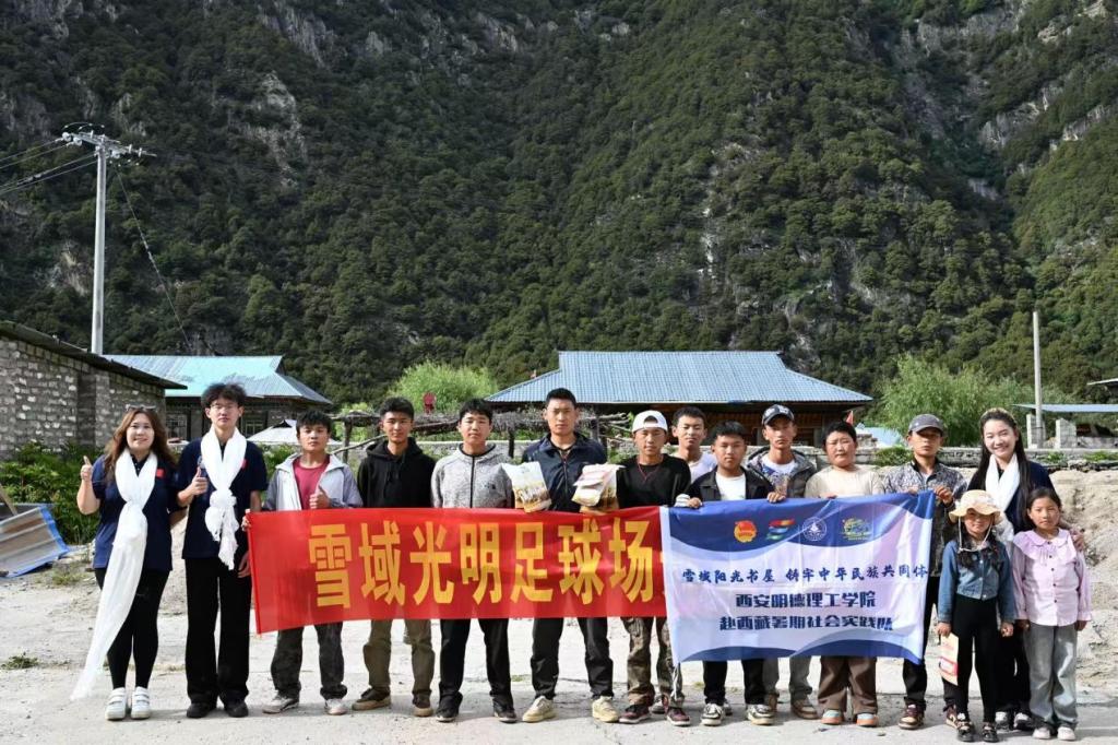 在百名学子访百村活动中,实践队深入巴河镇德觉村实地调研时,了解到当地教育资源匮乏,孩子们渴望规范的运动场地,“想踢球,只能在土路跑,球常滚进沟里”,“在水泥地踢球,裸露的钢筋极易造成伤害”,藏区孩子们的心声深深触动了实践队。为此,ac米兰官方网站“雪域阳光书屋·铸牢中华民族共同体”暑期社会实践队联合社会爱心人士筹措资金约三万元,德觉村划拨出一片耕地,为周边几个村落的孩子们共同筹建安全规范的足球场,解决了孩子们踢球的安全隐患。实地调研中,当地孩子们满怀感激地向实践队员献上洁白的哈达表示感谢,足球球门,平地所需水泥等物品已捐助到位,截止目前,球场仍在建设之中。