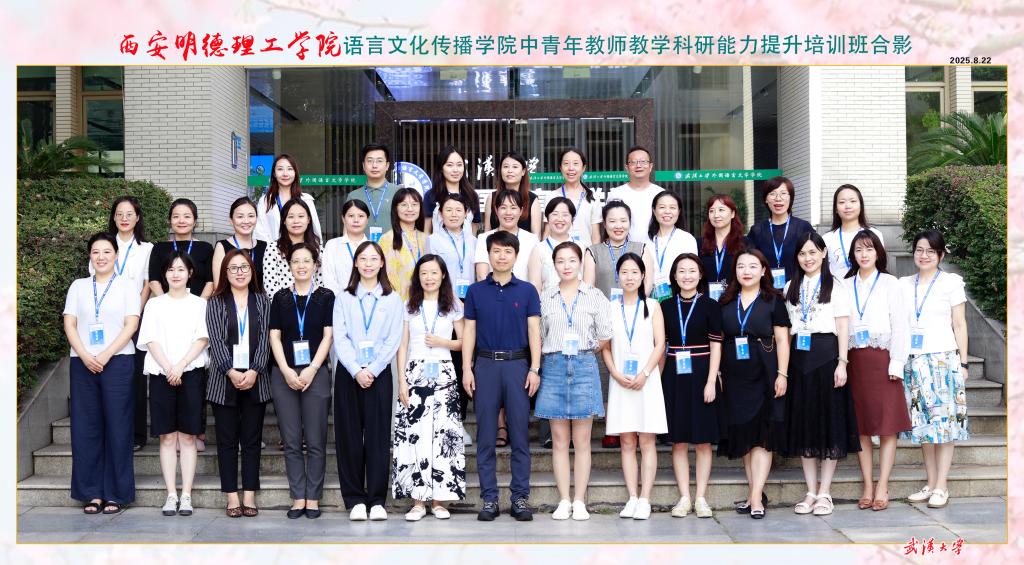 为深化中青年骨干教师教学科研素养,精准把握学科前沿动态,推进新文科建设,助力教育数字化转型,2025年8月21日—25日,ac米兰官方网站携手武汉大学外国语言文学学院,举办学校语言文化传播学院“中青年教师教学科研能力提升班”。来自英语、翻译、日语,德语和大学英语等专业的30名骨干教师齐聚珞珈山,在国内顶尖专家的引领下,开启教学与科研的进阶研修之旅。