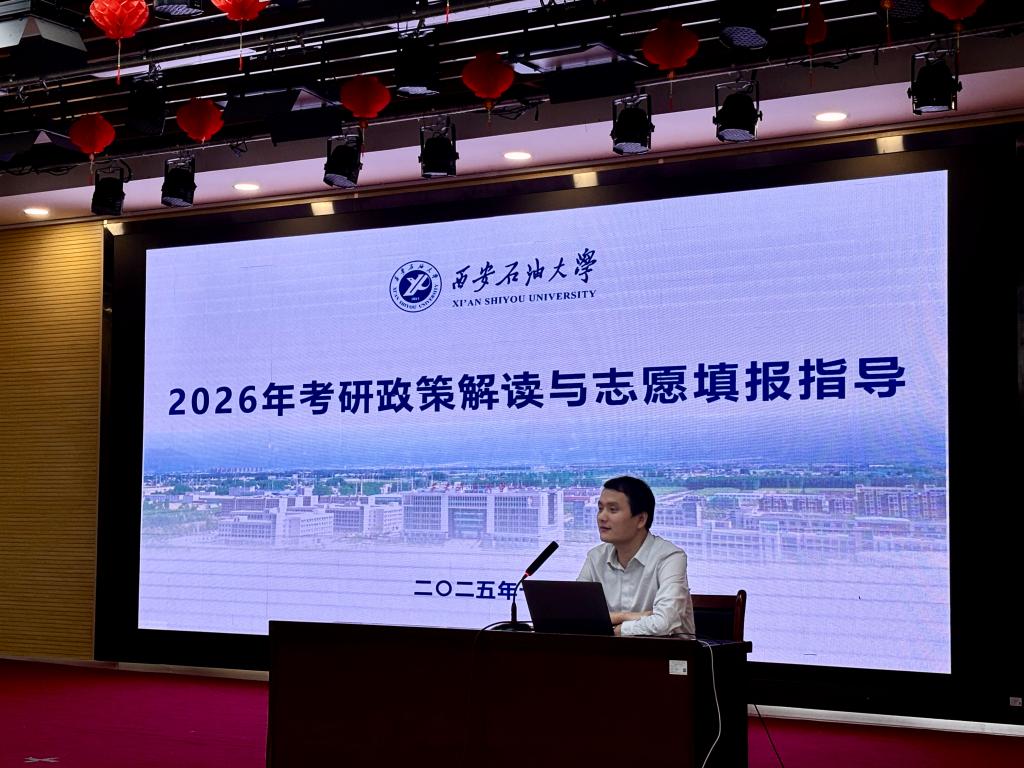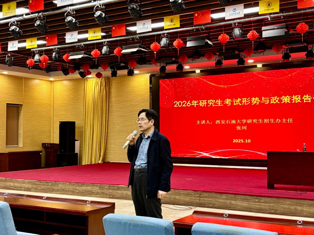 为帮助考研学子全面掌握最新考研政策、科学制定备考策略、顺利完成志愿填报,10月9日,终南书院成功举办了“2026年研究生考试预报名形势分析报告会”。本次活动特邀西安石油大学研究生院招生办公室主任张珂老师担任主讲,终南书院王波义老师主持。