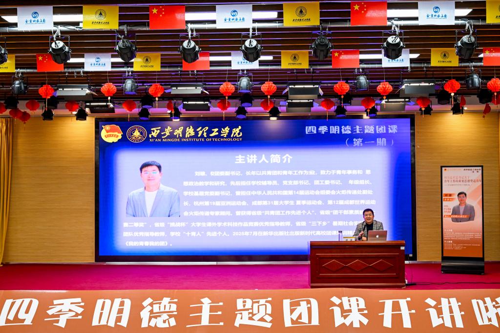 11月6日晚,学校“四季明德”主题团课第一讲在学校顺利开讲。校团委副书记刘雄担任主讲人,校级团学组织学生干部、各二级学院团委及学生会学生干部代表共计400余人参与本次学习。