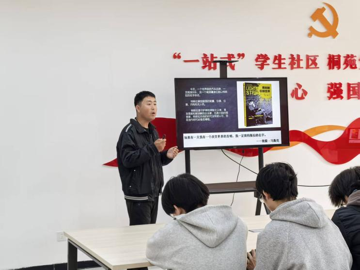 12月5日,学校在“一站式”学生桐苑党团活动中心举办主题为“跨界对话:科技与历史的双重创新启示”的师生读书分享会。本期活动特邀马克思主义学院教师景怡欣与信息工程学院辅导员闫佳两位老师分享,共约40名师生参加,共同聆听并参与了这场思想交融的阅读盛宴。