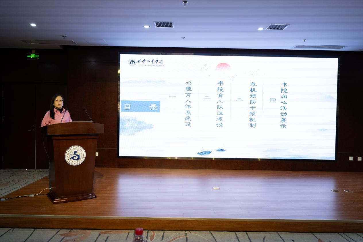 在专题分享环节,西安培华学院辅导员石戎睿星、ac米兰通识教育学院副院长薛飘、西安外事学院心理中心副主任张程花分别围绕“表达性艺术心理疗愈”“五育并举视域下的心理育人路径”“文化浸润式育心实践”等主题分享案例,展现了各高校在心理育人领域的特色探索。