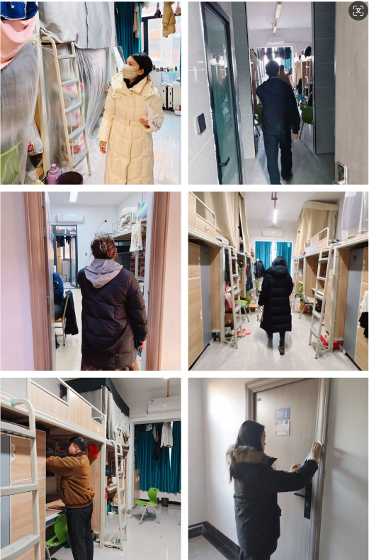 寒假将至,为进一步加强学生宿舍的安全管理,及时排查学生宿舍中存在的安全隐患,预防和避免安全事故发生,全面了解学生的离校情况。1月13日,党委学生工作部与各二级学院深入“一站式”学生社区,对学生宿舍进行全覆盖安全隐患联合大检查。