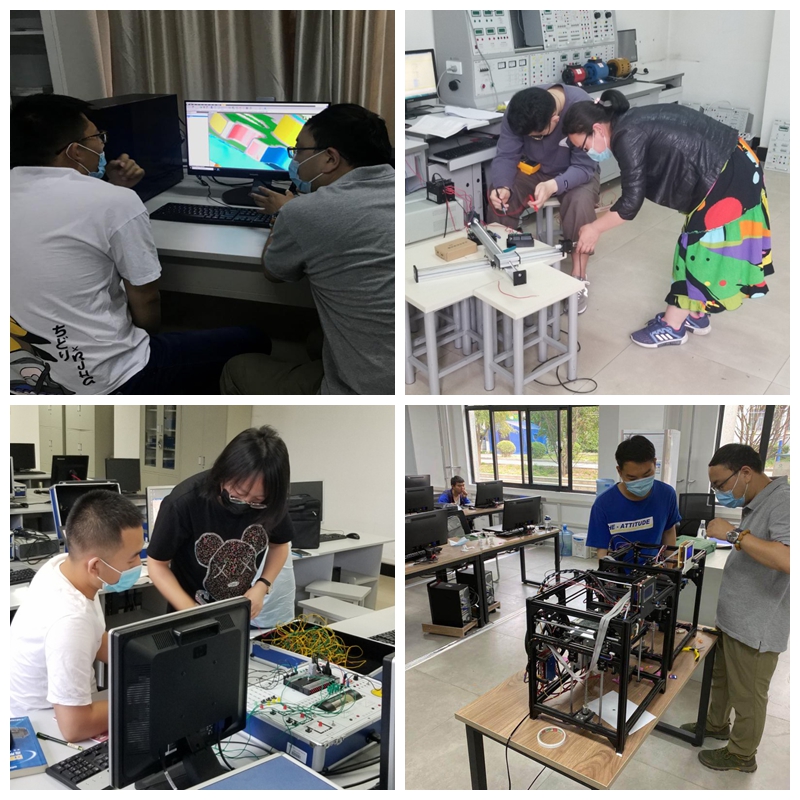 与此同时,实验工程中心根据不同的实验类型,对所有学生进行分组,采取分时、错峰的方式,确保实验室内参与实验人数符合防疫工作的相关要求。为方便学生实验、提高效率,考虑到学生实际情况,实验室根据学生需要,对个别实验室采取全周开放,确保学生及时、高效完成毕业设计调试及试制任务。
