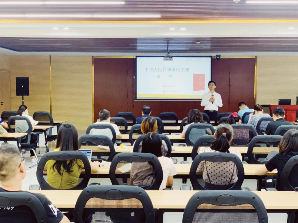 为了普及民法典的法律知识,提高教师知法、懂法、守法、用法的意识和能力,9月18日,通识教育学院党总支邀请了学院法律顾问、通识教育学院副院长郑汉印副教授在明志楼三楼报告厅为通识教育学院全体党员上了一堂生动的民法典专题党课。