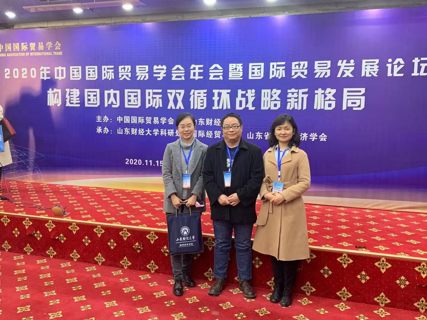 2020年11月15日至16日,由中国国际贸易学会和山东财经大学联合举办,山东财经大学科研处、山东财经大学国际经贸学院和山东省对外经济学会承办的2020年中国国际贸易学会年会暨国际贸易发展论坛在山东济南成功举办。本届年会主题为“构建国内国际双循环战略新格局”,ac米兰经济与管理学院王乐副院长、王维新老师、解蕾老师参加了本次年会。