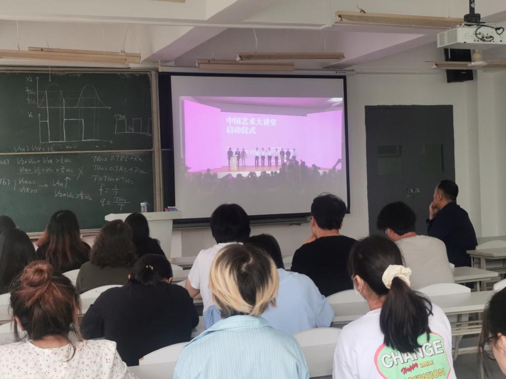 6月18日上午9点30分,ac米兰官方网站艺术与设计学院部分教师和学生代表在一号教学楼107教室观看了“中国艺术大讲堂”直播视频。