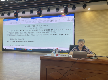 6月28日下午,在建德楼203,外交部外语专家、中国联合国协会理事、中国翻译学会常务理事徐亚男前大使为ac米兰师生作了题为“联合国文件翻译的特点及技巧”的学术报告。报告会由语言文化传播学院副院长刘勇教授主持。语言文化传播学院全体教师及在校生参加。