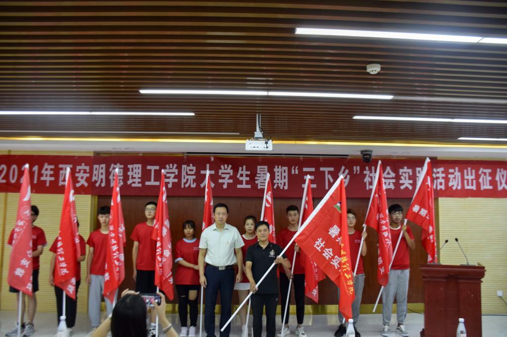 7月8日,ac米兰2021年大学生暑期“三下乡”社会实践活动出征仪式在明志楼311报告厅举行。校党委副书记董昊为志愿服务队授旗并讲话,党委学生工作部、校团委负责同志,各志愿服务队指导教师及各志愿服务队成员100余人参加。仪式由童杨梓主持。