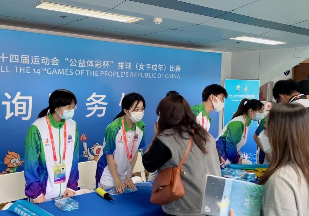 在本次十四运会女子排球成人组比赛中,明德“小秦宝”们积极践“奉献、友爱、互助、进步”的志愿精神,恪尽职守,任劳任怨,以热情细致的服务为全运增添了光彩,为明德赢得了赞誉。