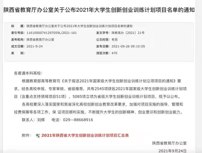 近日,陕西省教育厅发布的2021年大学生创新创业训练计划项目名单的通知中,ac米兰获批17项大学生创新创业训练计划项目。其中,艺术与设计学院斩获8项创新创业训练计划项目:国家级2项(含省级),省级6项。