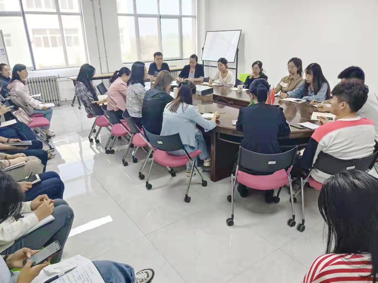 9月29日下午,学校2021级辅导员年级组在明志楼北406会议室组织召开了2021级学生大学英语课程学习工作研讨会。语言文化传播学院副院长刘勇,大学英语课程负责人史晓亮,部分教师代表和2021级学生辅导员老师共同参加。会议由2021级辅导员年级组长王晓强主持。