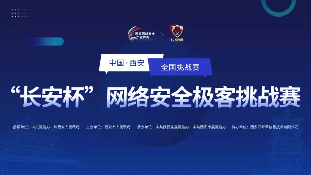 2021年国家网络安全宣传周在陕西西安主办,主要活动包括网络安全赛事、线上主题晚会、网络安全博览会等。其中“长安杯”是网络安全宣传周重要赛事,参赛战队近1000支队伍,覆盖全国20余个省市的500余所高校、企事业和党政机关单位。其中9月25日,“高校组”线上CTF解题赛在9月25日进行,比赛主要从多个方向综合考察个人/团队网络安全综合实践能力,题型涉及Web渗透、Crypto、MISC、Reverse、PWN等。