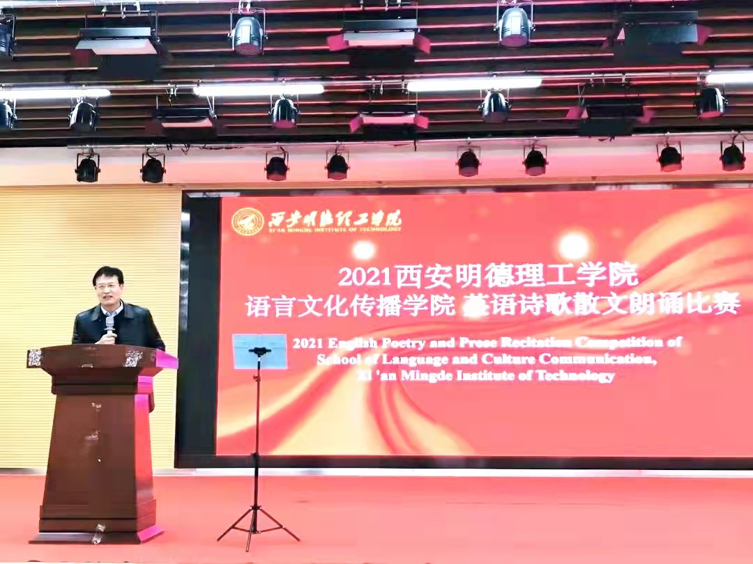 比赛伊始,马庆林院长发表致辞。他强调了诗歌散文学习和赏析在外语学习中的重要性,并祝愿所有的参赛选手取得优异的成绩。