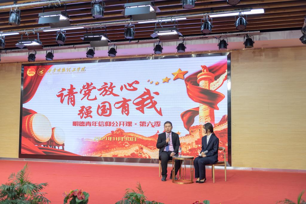 11月30日下午,“请党放心强国有我”第六季明德青年•信仰公开课第二讲于建德楼203报告厅举行。学校2016届机械设计制造及其自动化毕业生、神舟载人飞船系列中继测控天线总装工艺工程师周君权主讲,青年马克思主义者培训班、大学生骨干培训班学员以及各二级学院学生代表参加了本次活动。