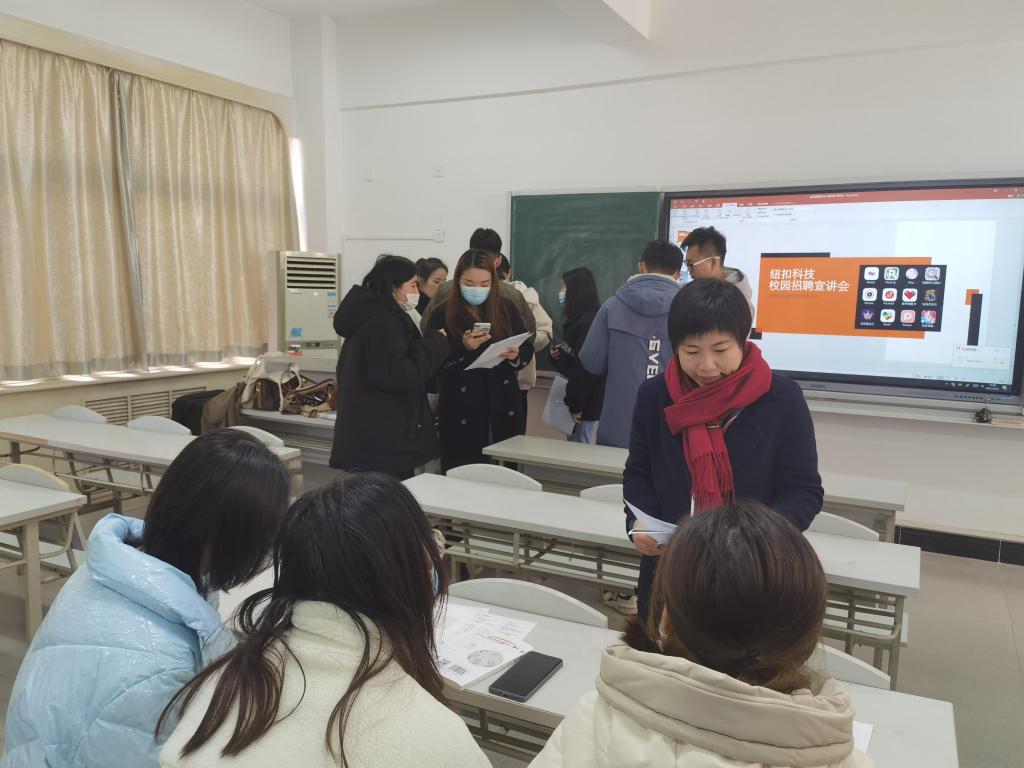 会上,西安纽扣软件科技有限公司HR从公司发展历程、发展成就、发展现状等方面进行了详细的介绍。随后,公司HR和宣讲人员现场收取了学生简历并对学生对公司和岗位的问题答疑解惑,帮助学生分析就业择业岗位和未来发展。本次招聘会运用新媒体平台提前宣传,为同学们提供了充足的岗位资源支持,使得各位同学对西安纽扣软件科技有限公司的各项信息和企业文化有了一定的了解。
